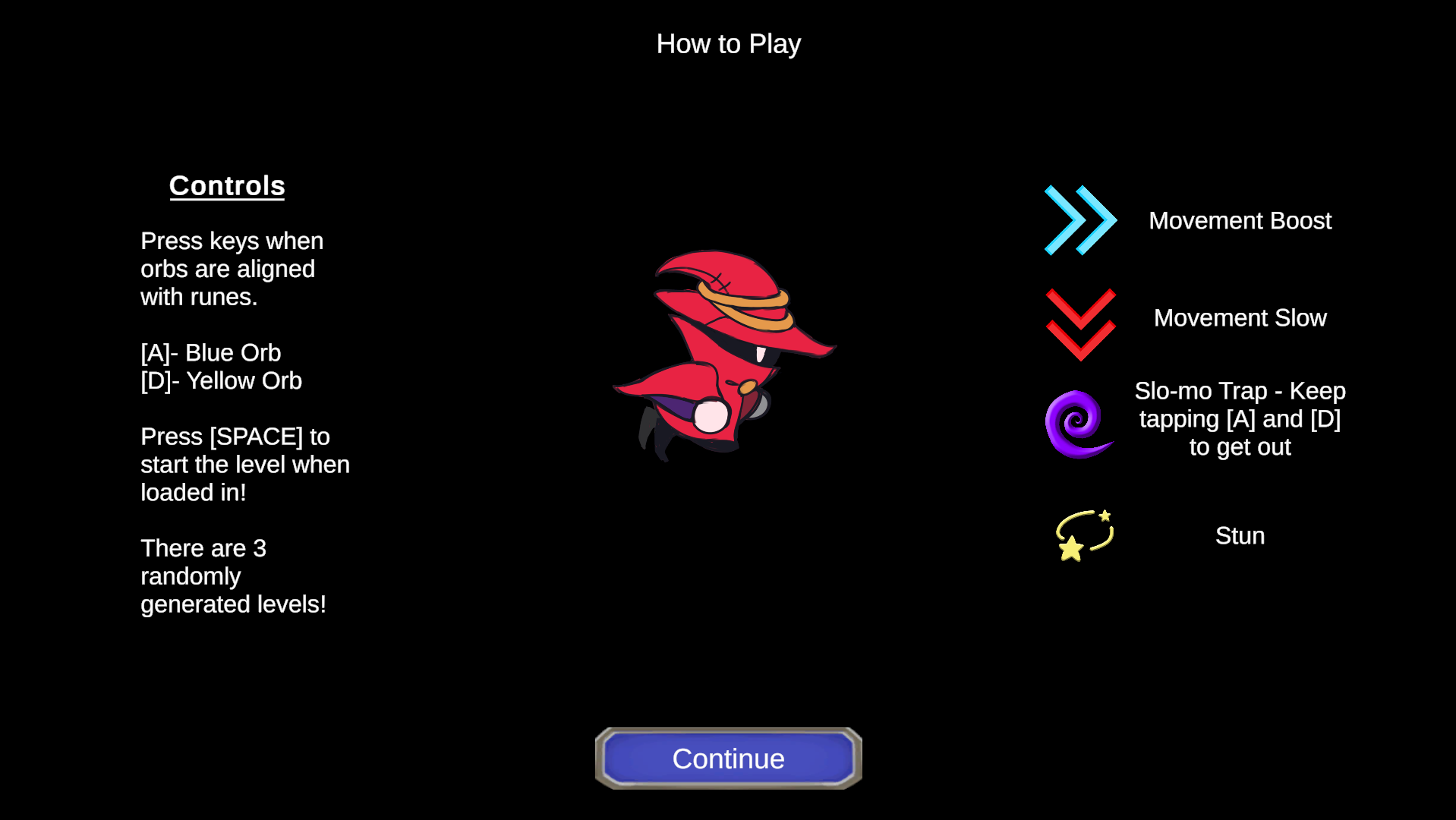 There are 3 randomly generated levels. Instructions in the first scene upon opening the game.
